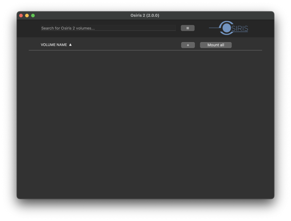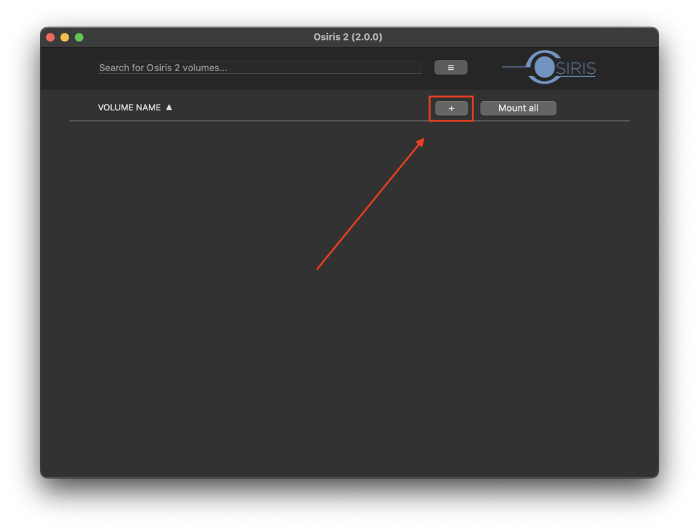2. to create you first Osiris volume click on the + or drag and drop a folder from Finder into the Osiris 2 window.