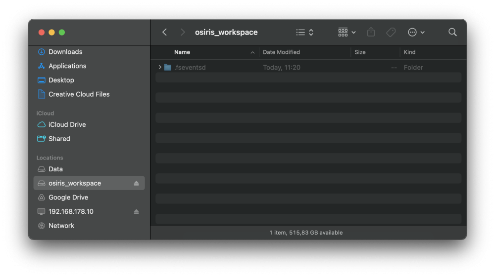 8. Your Osiris 2 volume will now appear in the macOS Finder.