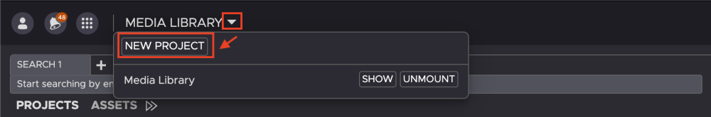 If you already have a project open, the New Project button is not directly visible. Your first have to click on the dropdown icon next to the name of the open project and then click on the New Project button in the project widget.