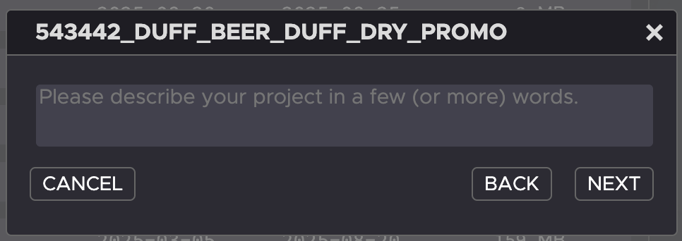4. Add a description to your new project. The description will become searchable once the project has been created. Then click “Next”.
