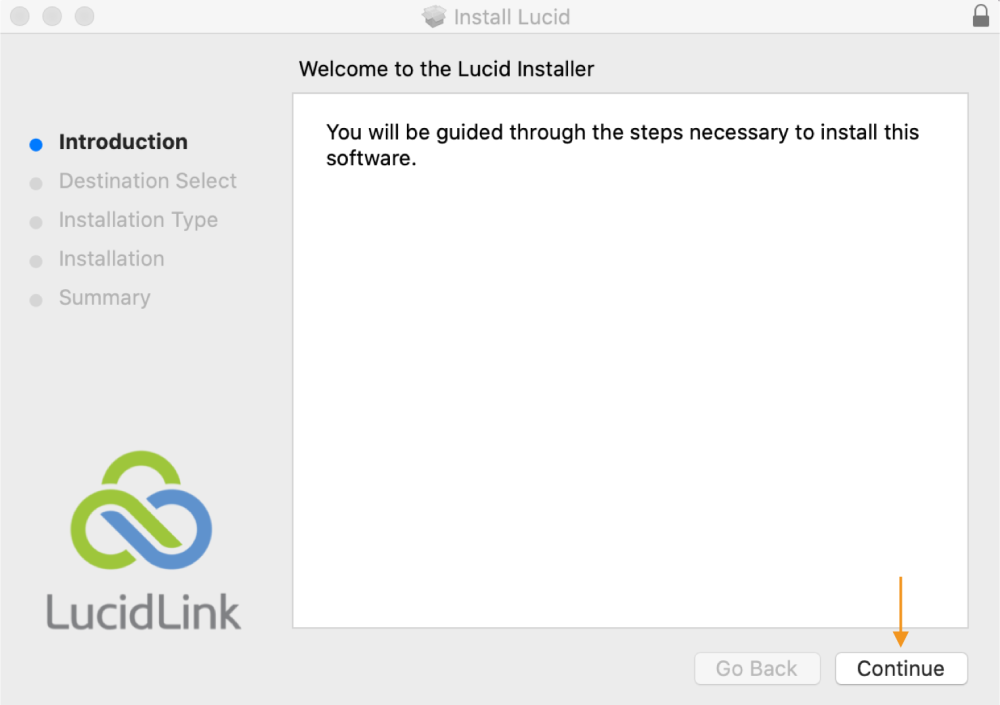 1. Double-click on the Lucidlink .pkg file. For optimal compatibility, make sure to use the version linked here.