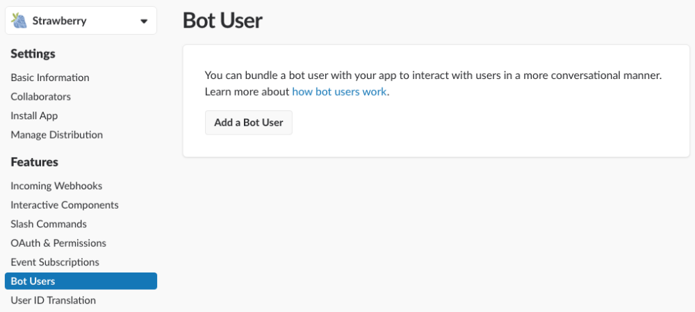 Strawberry can send notifications to your organization’s Slack users via a Slack Bot. This chapter explains how to set up a Slack bot bot.