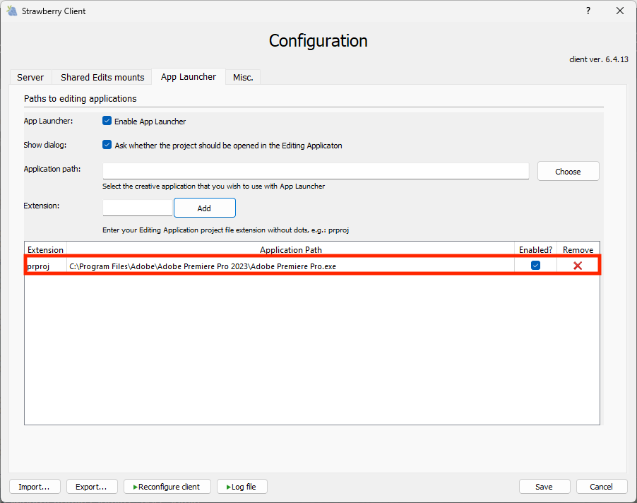 7. Once you have typed in the project file extension, click on the Add button. The app launcher entry will be created right away.