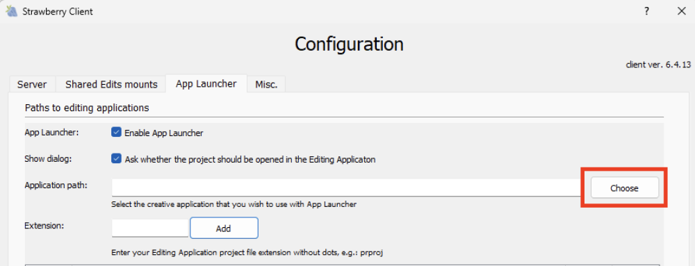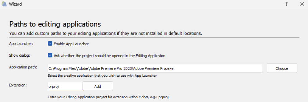 6. Now go to the “Extension” field below and type in the project file extension from your previously chosen application. For example… If the application is Premiere, then the project file extension is prproj. If the application is After Effects, then the project file extension is aep. If the application is Media Composer, then the project file extension is avp. Do not use a dot in the extension field!