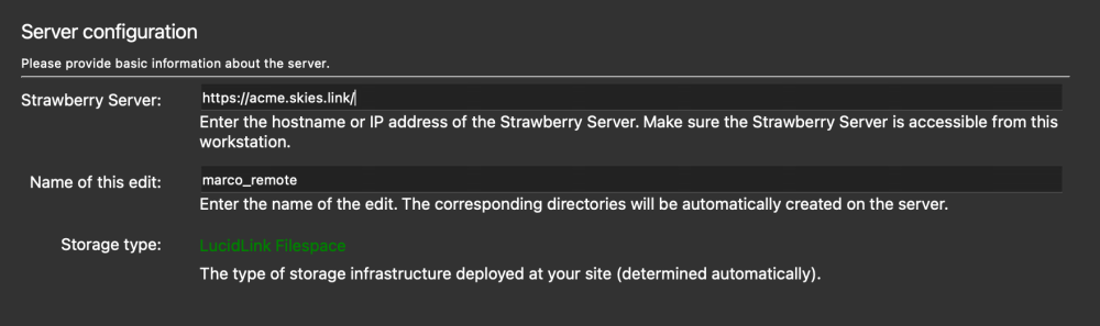 - Use storage name as prefix for open projects: Only check this box, if your Strawberry server manages more than one physical storage volume. Otherwise, keep the box unchecked.