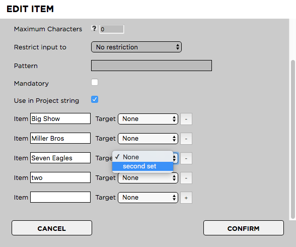 6. Next to each drop-down entry is a drop-down menu called “Target”. Select the drop-down entry for which you want to load a specific target and choose that target from the list of targets.