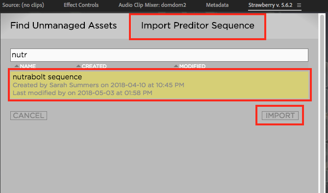 4. Select the sequence that you wish to import by clicking on its name
