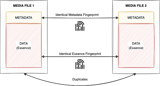 If two files have the same metadata & essence fingerprints, then this means that they are identical, or in other words… one of the files is an exact copy of the other.