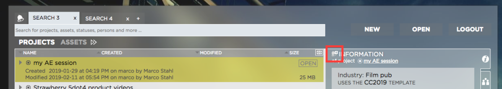 2. Click on the “bell” icon next to the project’s “information” label