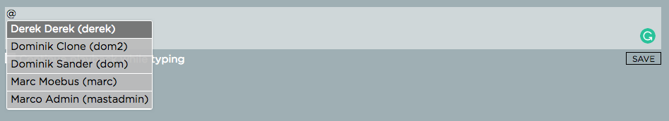 2. When typing an annotation, use the “@” symbol on your Keyboard. A list of usernames is presented.