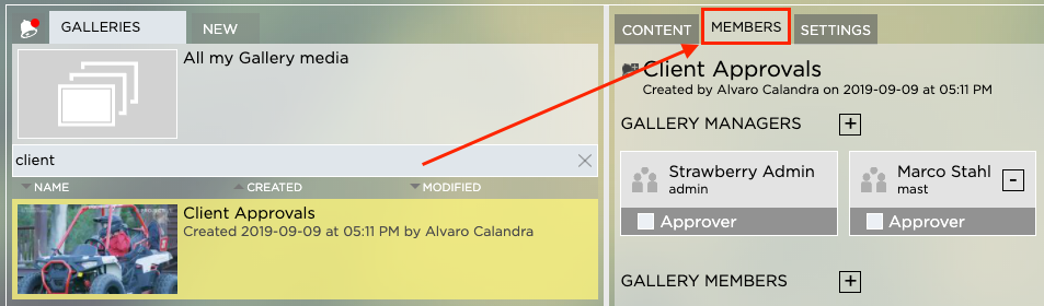 1. Select the Gallery from which you want to remove a Member or Manager