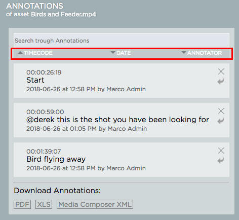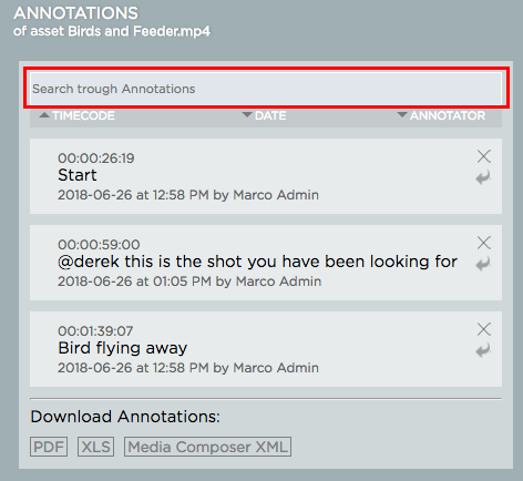 2. Once in “Annotation View”, type your search word into the search field above the annotation list