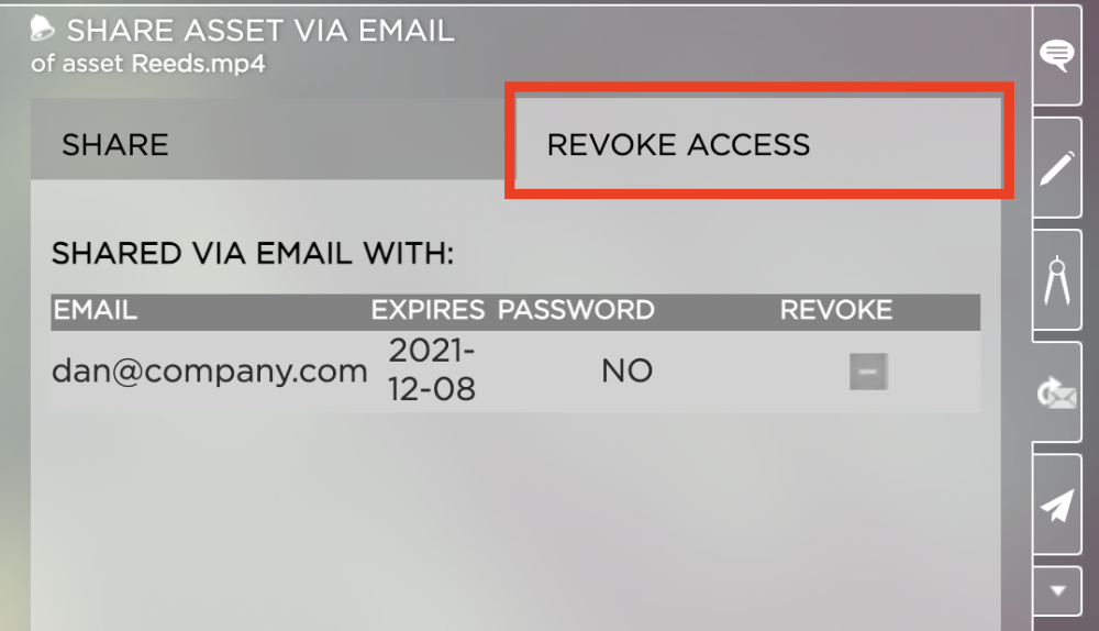 4. Click on the - button next to the user name to revoke access to that asset from the user. The user will no longer be able to access the asset.