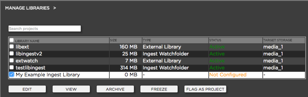 1. Go to “Projects / Manage Libraries” and checkbox the Library that you created in the previous step. The library will be shown as “Not Configured”