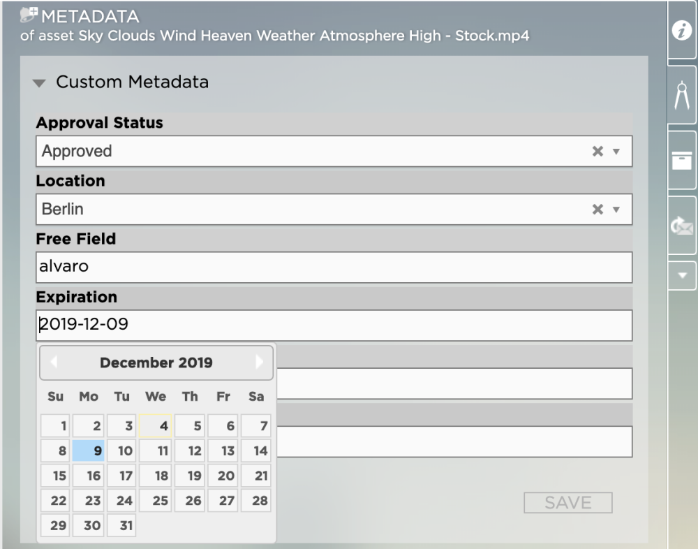 Before expiration dates can be set on media assets, an asset expiration field has to be created from within the Strawberry Admin panel.