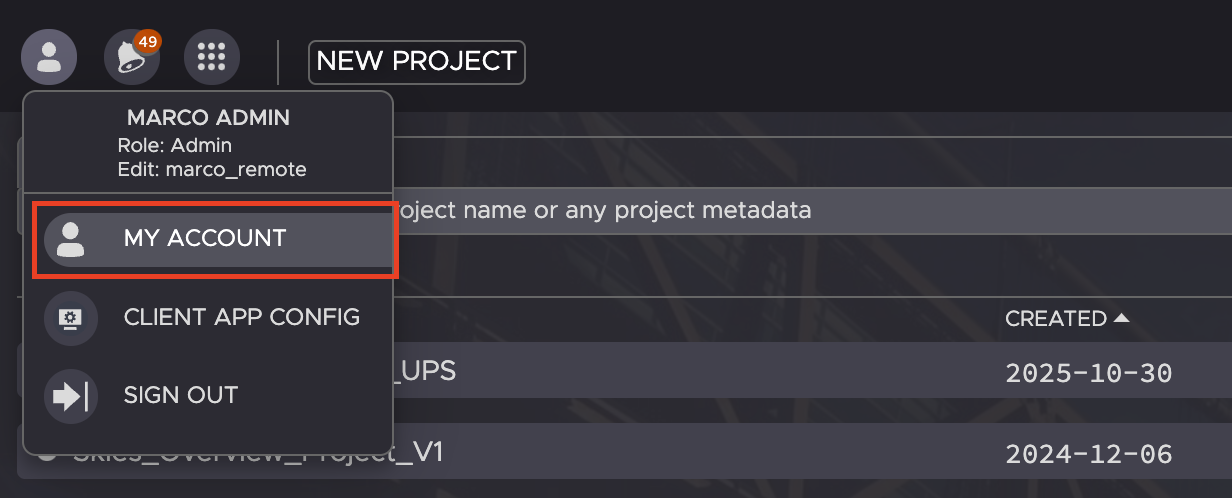2. Click on the “persona” icon in the top left corner and then on My Account.