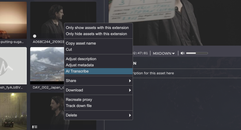 Generating a Transcript for a single Asset from the Context Menu