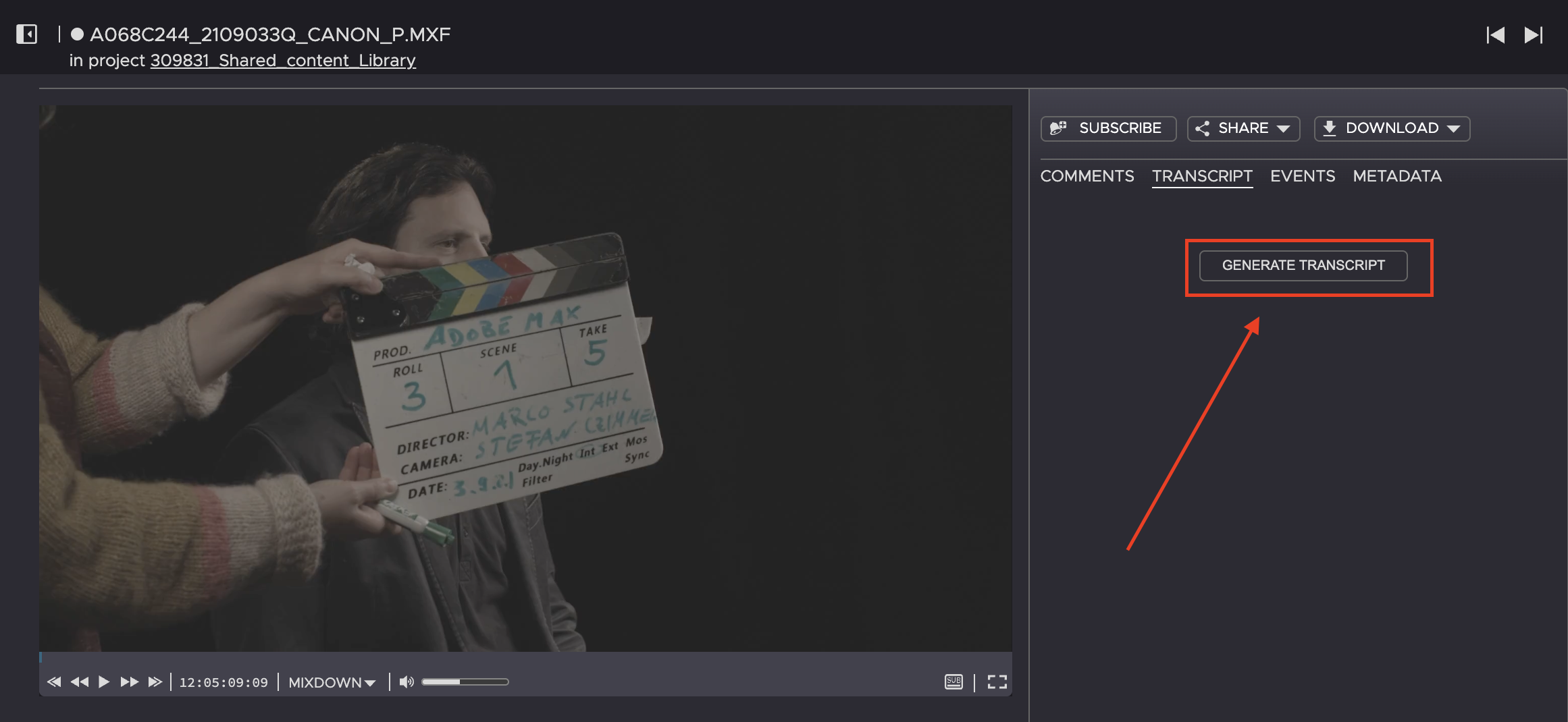 3. Click on the Generate Transcript button.