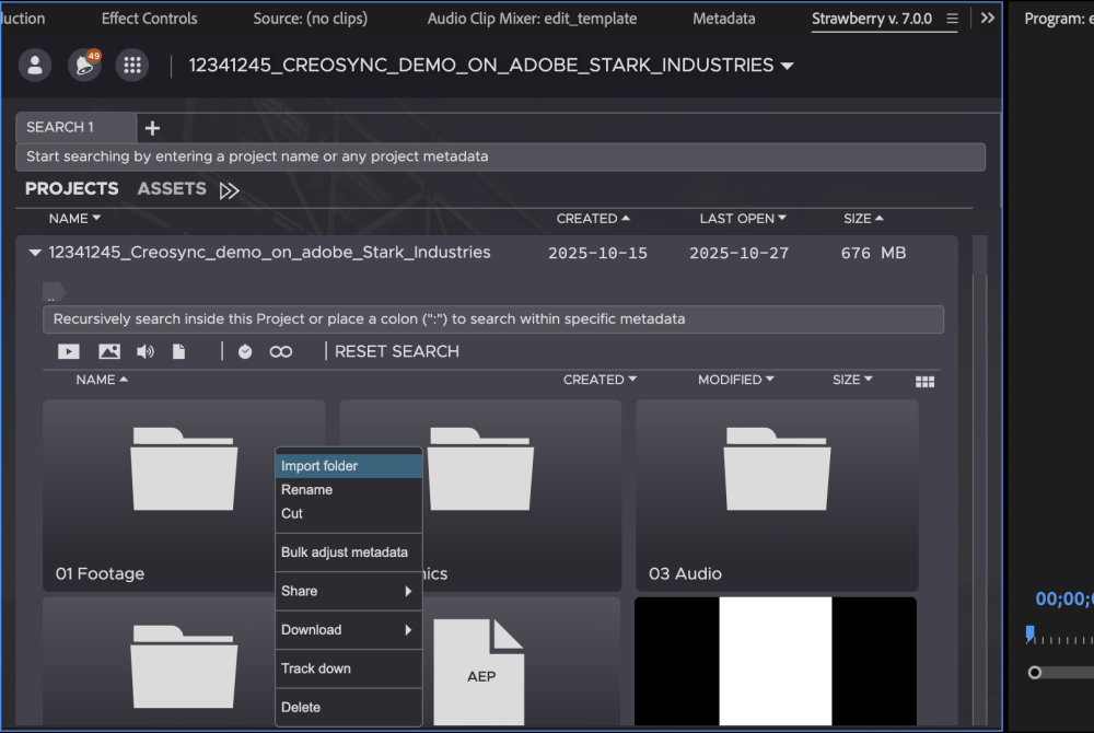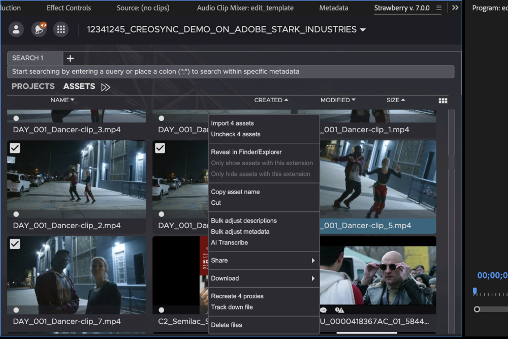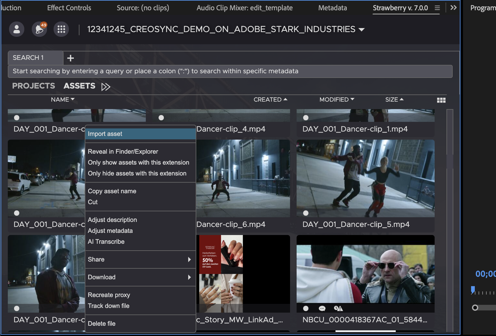 3. Right-click on one of the selected assets and select Import x assets, whereby x represents the number of selected assets.