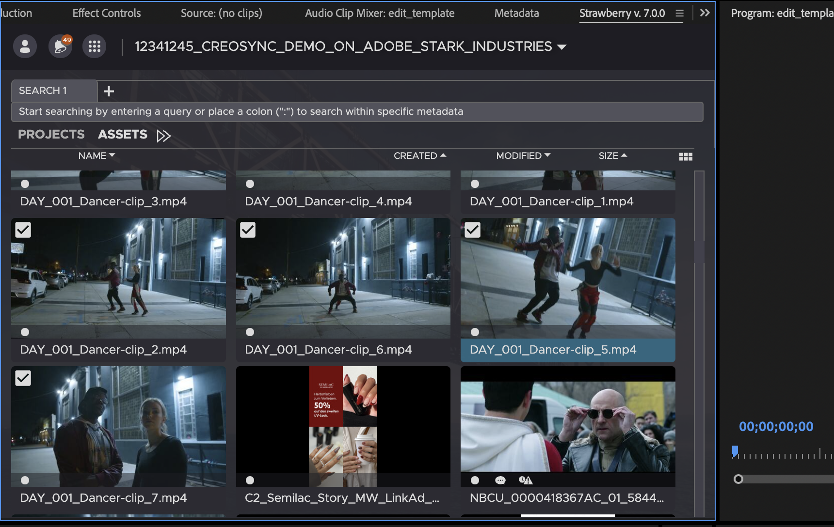 2. In the panel, select the files you wish to import by using the checkbox icon that appears when hovering over a file. You can also select multiple files by drawing a lasso around them. To do so, click on an empty area in the panel, hold the left mouse button down, draw a rectangle over the assets you wish to select and release the mouse button afterwards.