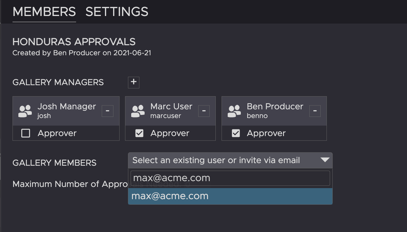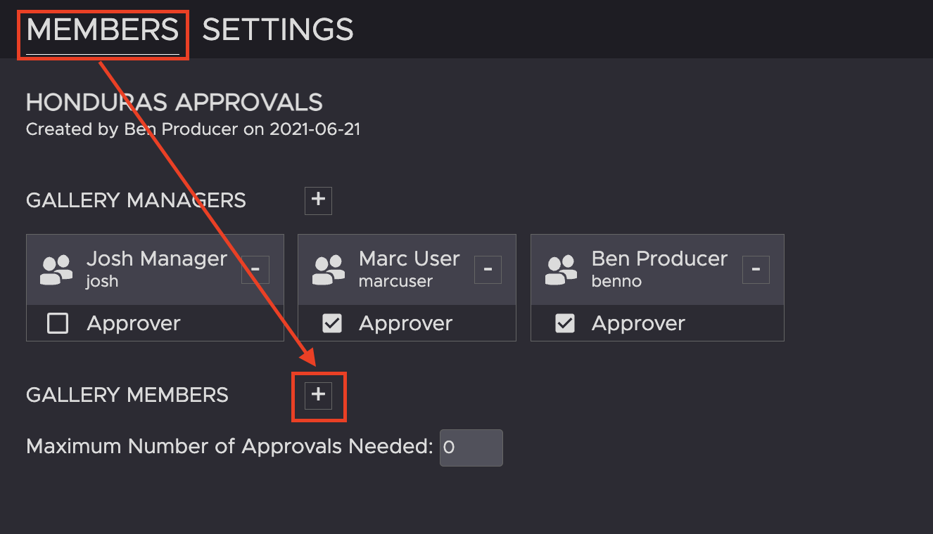 3. In the MEMBERS tab, click on the + button next to “Gallery Members”.