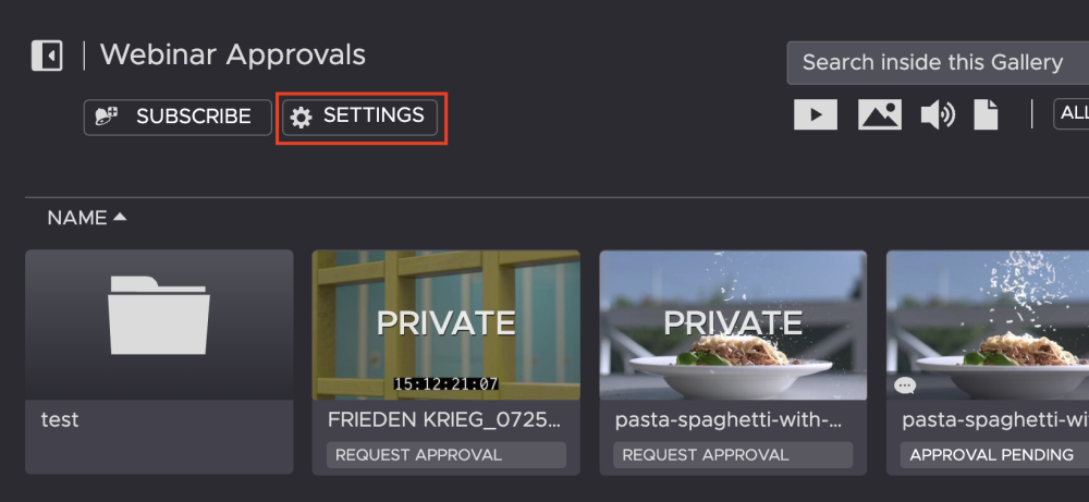 2. Click on the Settings tab that is located on the left side below the Gallery name to open the Gallery’s settings.