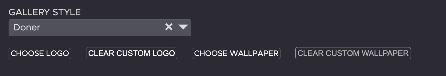 4. Choose a style from the dropdown menu or upload a custom logo and/or wallpaper for the gallery. Strawberry will automatically resize the logo to fit the gallery without changing its aspect ratio. You can clear custom logos and wallpapers by clicking on the Clear Custom Logo/@Clear Custom Wallpaper@ button.
