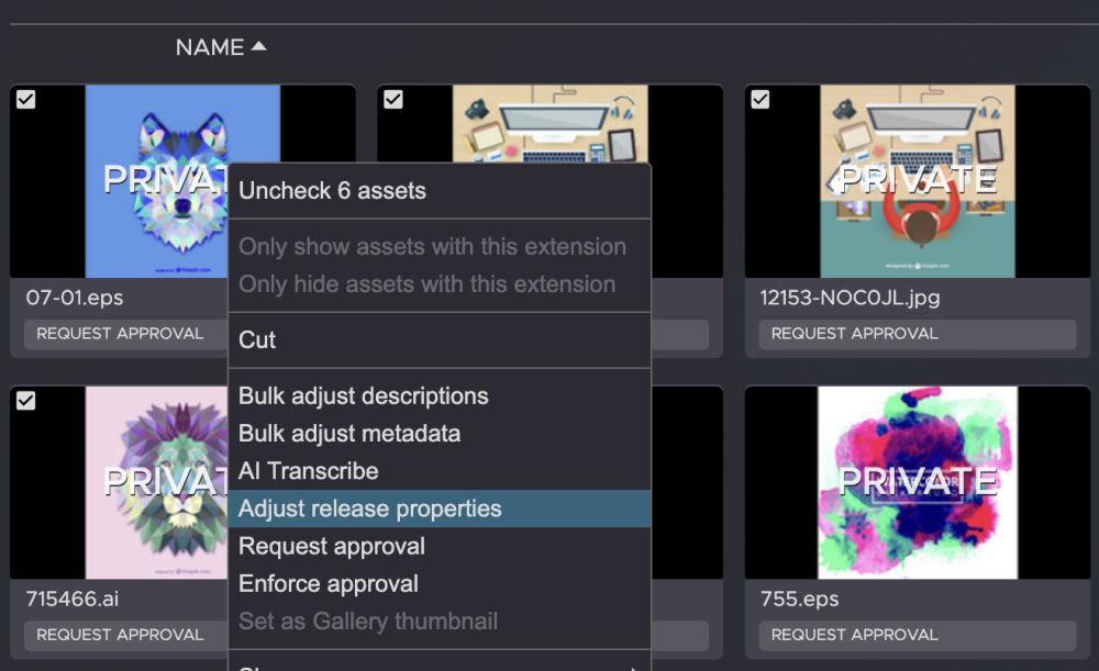 2. Right-click on one of the selected assets and select Adjust release properties from the context menu.