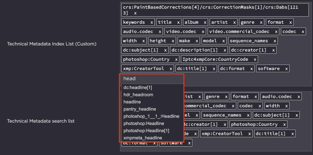 4. Start typing the name of the metadata property that you would like to add. An auto-complete list will appear and it will only display items thar are in the Technical Metadata Index List.
