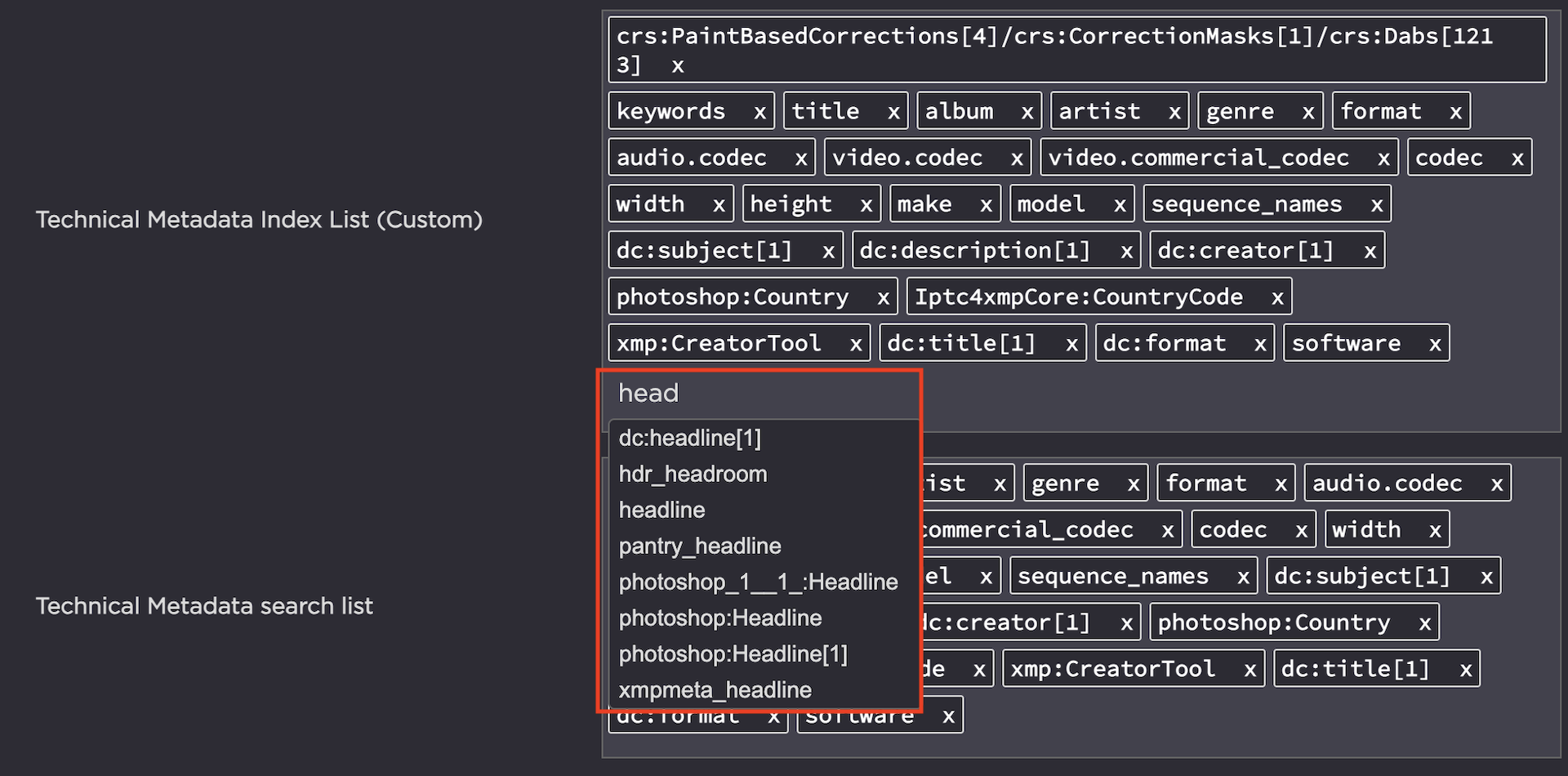 5. Once you have found the metadata in the auto-complete list, you can click on it to auto-fill it.