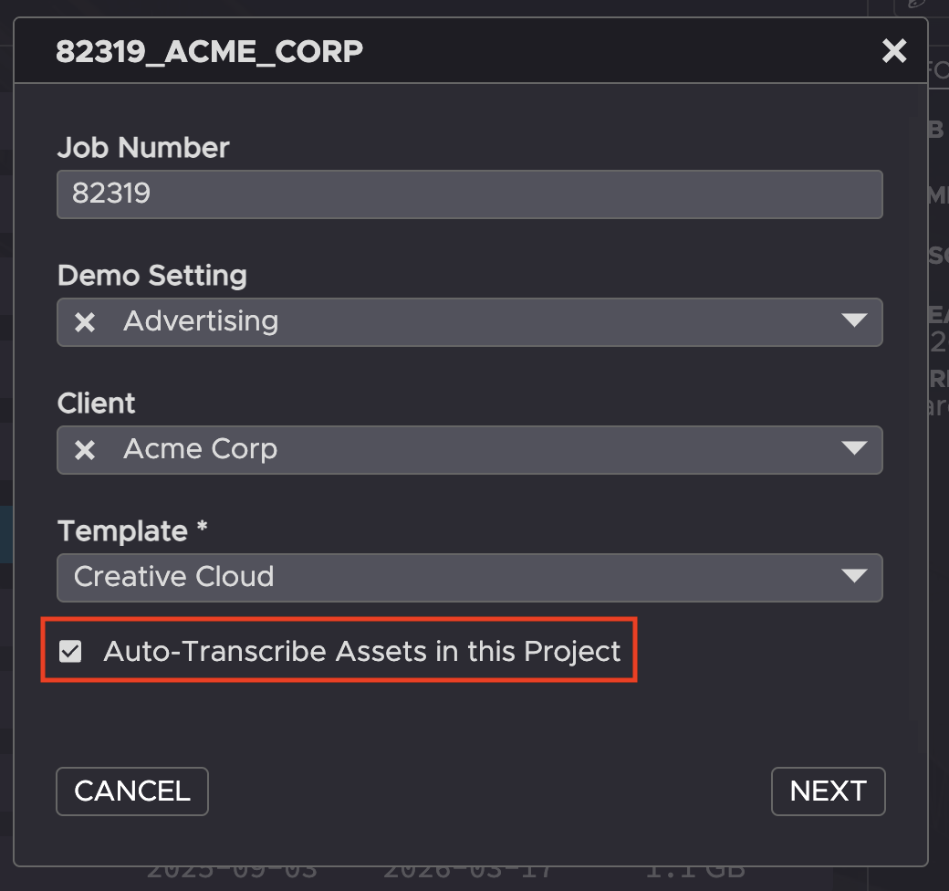 3. Once the project has been created, any new assets in this project will be auto-transcribed.