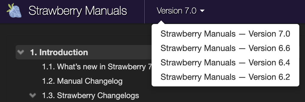 Please choose a section from the left or search for a chapter using the top right corner’s search field. If you view this page in a web browser, you can change the product manual version to match your Strawberry version using the version dropdown menu above.